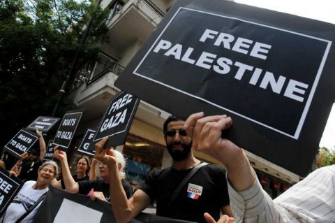 27 juin 2011 - Manifestation à Athènes, par des participants à la Flotille II pour Gaza - Photo : AP