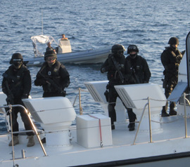 Nous pensions que les Forces de Défense israéliennes (IDF) nous arraisonneraient dans les eaux internationales, mais ce sont des commandos grecs qui nous ont assaillis près du Pirée. Comme un passager l'a dit "Israël a externalisé le blocus en Grèce, en Turquie et dans d'autres pays."Il a obtenu leur coopération grâce aux lourdes pressions diplomatiques de leurs alliés (surtout les USA) et à des menaces économiques. Actuellement, huit bateaux en partance pour Gaza et transportant des passagers originaires de 22 pays sont bloqués dans des ports grecs et turcs.