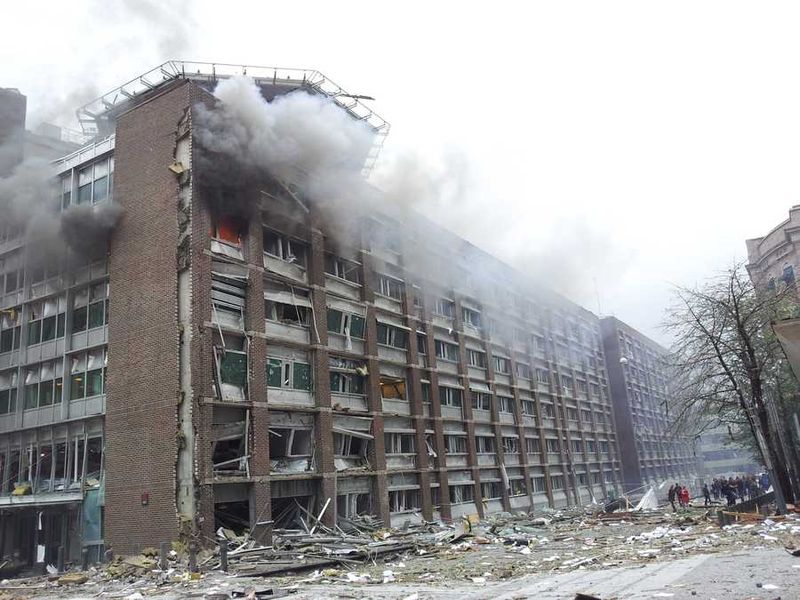 Une forte explosion a secoué la Norvège, ce vendredi en milieu d'après-midi, devant des immeubles du gouvernement, ravageant plusieurs façades et provoquant plusieurs morts. Rappelons que la Norvège fait partie de l'Otan et a envoyé des troupes en Afghanistan pour soutenir la guerre qu'avait initié George Bush dans sa "croisade". Le centre nerveux d'Oslo, où se trouvent la plupart des ministères et le siège du principal journal du pays. Puis, une poignée de minutes plus tard et à 38 km de là, une attaque à l'arme automatique contre un meeting politique dans la banlieue de la capitale norvégienne. Les médias parlent de dix morts, un témoin a dit avoir vu "20 à 25 corps" flottés dans l'eau.un bilan possible de 30 morts dans la seule fusillade, qui a eu lieu sur l'île d'Utoya, où se tenait l'université d'été des jeunes du Parti du Travail, la formation du Premier ministre, Jens Stoltenberg.