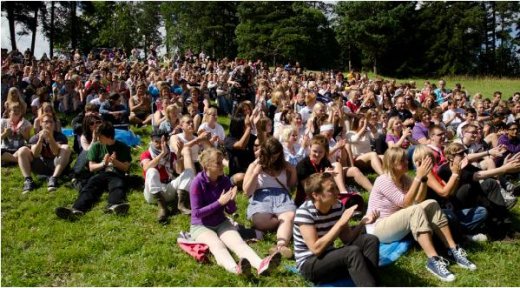 Les militants de l'AUF- mouvement de jeunesse du parti travailliste norvégien- au début du rassemblement d'Utoya oumma.com