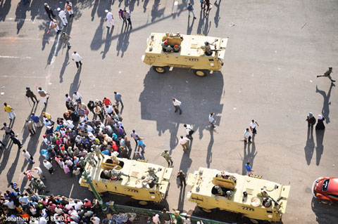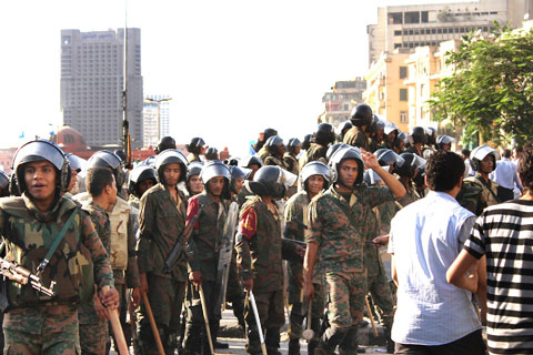 Le 1er août, les troupes égyptiennes donnent l'assaut contre les manifestants de la place Tahrir [Photo: Nora Shalaby]