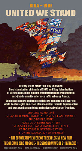 Affiche du rassemblement prévu à Strasbourg le 2 juillet 2011 de la «première conférence transatlantique anti-islamisation».