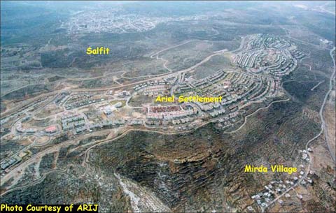 La colonie illégale Ariel (construite en 1978 suite aux accords de Camp David entre l'Egypte et Israël) est considérée comme la plus importante en Cisjordanie occupée. Outre ses 18.000 colons juifs, elle héberge une université et une zone industrielle. Le bloc de colonies Ariel, constitué d'une trentaine de colonies, a une population totale d'environ 38.000 colons (informations détaillées sur Poica, NdT).