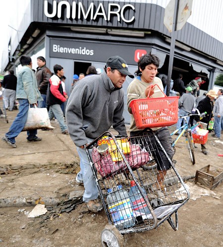 Saqueo d'un magasin Val Mart au Chili après le tremblement de terre, mars 2010, ou quand "nécessité fait loi"