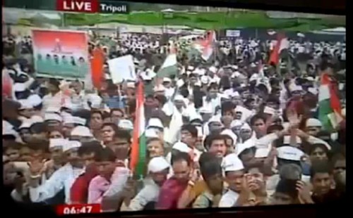 [13] youtube.com Reportage de la BBC du 24 août 2011 sur la place Verte « à Tripoli » montrant une foule agitant des drapeaux... indiens.