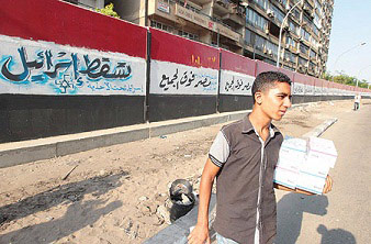 08.09.2011 - Décidément, les révolutionnaires égyptiens ne manquent pas d'originalité. Pour faire face au mur érigé aux abords du bâtiment qui abrite l'ambassade d'Israël en Égypte, et assimilé au mur de séparation construit en Cisjordanie occupée, ils ont proposé une toute nouvelle idée : « Du pipi collectif sur le mur de l'ambassade israélienne ».