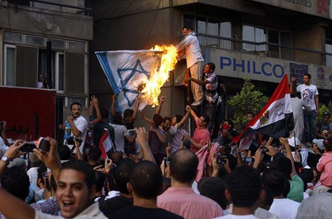 Les révolutionnaires égyptiens ont remporté une nouvelle victoire hier vendredi : l'ambassadeur sioniste, sa famille et le personnel de l'ambassade ont été exfiltrés de toute urgence après que des milliers de manifestants aient détruit le mur qui protège la représentation israélienne au Caire et à pénétrer dans ses locaux.
