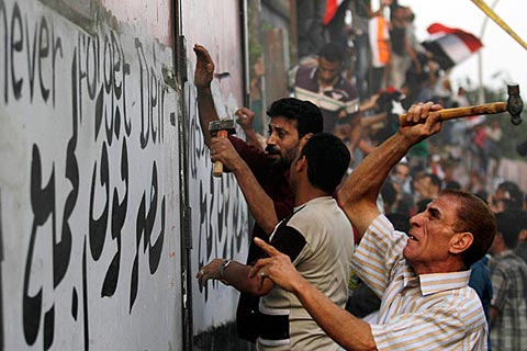Samedi 10/09/11, devant l'ambassade sioniste au Caire (© REUTERS/ Mohamed Abd El-Ghany)