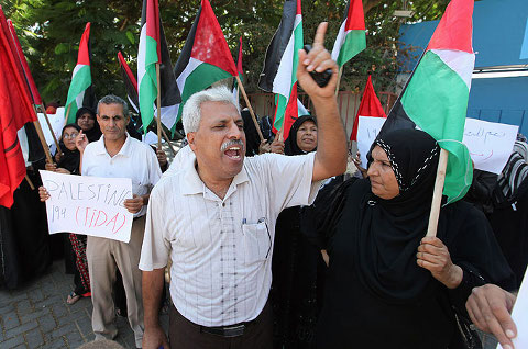 Manifestation à Gaza devant le siège de l'UNESCO, en soutien à la demande d'intégration de la Palestine comme Etat-membre aux Nations Unies - Photo : Reuters