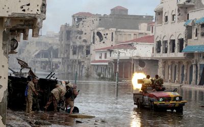 Il y a près d'un mois 3 000 soldats et 80 000 civils ont été pris au piège : la ville est assiégée par les forces du Conseil national de transition encadrées par des officiers de la Coalition internationale et bombardée par l'OTAN.