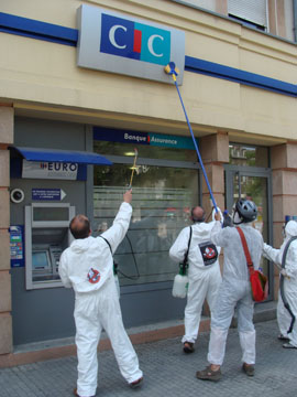 Pour « chasser les phénomènes paranormaux de la finance », des militants organisent des actions de « nettoyage » du système bancaire. Des coups de kärcher sur les vitrines des agences, pour sensibiliser et faire passer un message : citoyens et responsables politiques doivent reprendre la main sur l'activité bancaire, pour remettre la finance au service de la société. A Saint-Denis (93), les Bankbusters sont partis à l'assaut des banques.