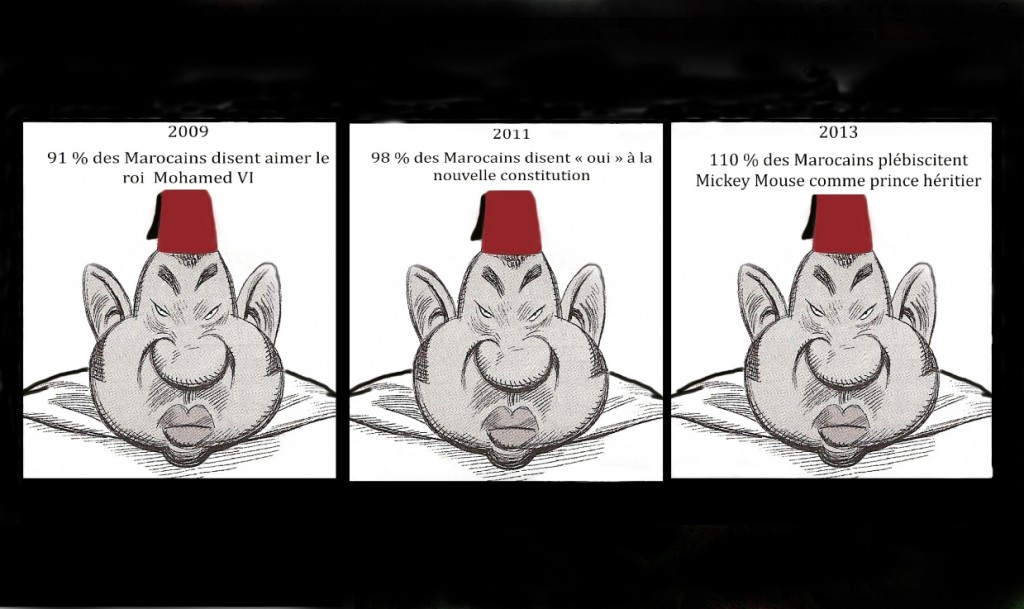 La nouvelle Constitution taillée sur mesure pour lui par la commission Mennouni ne touche pas à l'essentiel de ses prérogatives. Aucun peuple, aussi illettré soit-il, aussi crédule soit-il, ne peut se résoudre à voter oui de cette manière pour le maintien du déni de droit, de l'autoritarisme, des injustices et des inégalités sociales. Nombre de gens sont estomaqués. Ce vote référendaire est une avancée en trompe-l'œil, une mascarade qui ne change rien au paysage sociopolitique du Maroc. Il conforte tout au plus le roi dans son rôle makhzanien d'antan, jetant de la poudre aux yeux des berbéristes, des islamistes et des formations politiques dépourvues de toute légitimité populaire.