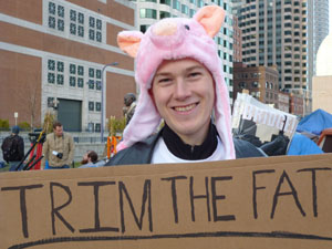 Andrew, 23 ans, employé dans une grande compagnie américaine, soutient le mouvement Occupy de Boston depuis le début, et rejoint le campement dès qu'il peut. Critique envers les politiques, il pense que la force d'Occupy est surtout d'essayer de changer les mentalités.