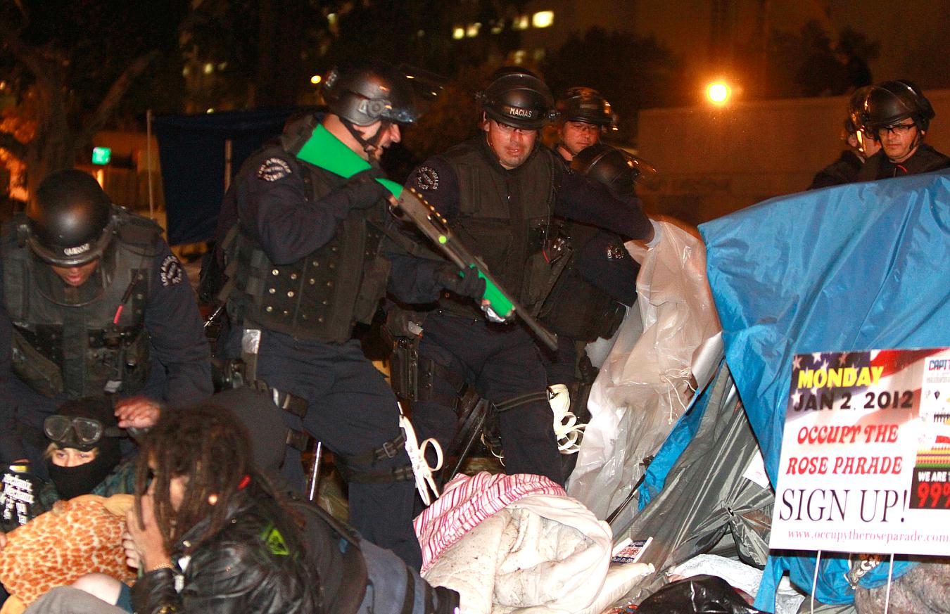 First off, don't believe the PR bullshit. There was nothing peaceful or professional about the LAPD's attack on Occupy LA–not unless you think that people peacefully protesting against the power of the financial oligarchy deserve to be treated the way I saw Russian cops treating the protesters in Moscow and St. Petersburg who were demonstrating against the oligarchy under Putin and Yeltsin, before we at The eXiled all got tossed out in 2008. Back then, everyone in the West protested and criticized the way the Russian cops brutally snuffed out dissent, myself included. Now I'm in America, at a demonstration, watching exactly the same brutal crackdown...