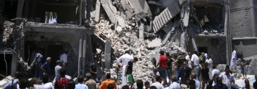 C'est ainsi que de nombreux bâtiments publics, sans le moindre intérêt stratégique (notamment à Tripoli et les villes pétrolières Ras Lanouf, Brega, Ajdabiya) ont été bombardés [18]. Ont été aussi bombardés des réseaux de communication, des éléments de l'infrastructure industrielle, des monuments historiques, etc.