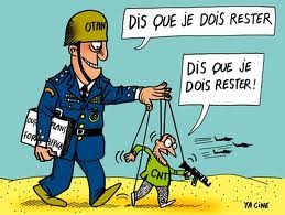 En second lieu, ces résolutions disant tout et leur contraire (les Nations Unies n'ont jamais mis en place le Comité d'état major et la police internationale prévus par la Charte), créent les conditions d'une intervention de l'OTAN dont les déclarations officielles et les objectifs évoluent très vite de la dimension « protectrice » à la dimension destructrice du régime de Tripoli.