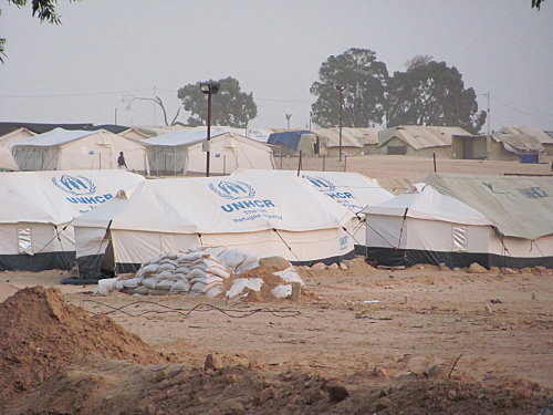 A la frontière tunisienne, les camps du Haut Commissariat aux Réfugiés des Nations Unies ont changé de locataires. Ce sont désormais les vaincus et les Libyens à la peau noire, assimilés aux mercenaires subsahariens de Kadhafi, qui y ont trouvé refuge. (© photo Pierre PICCININ - octobre 2011)