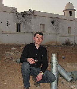 J'ai donc gagné une caserne, elle aussi mitraillée et saccagée, où un groupe de jeunes miliciens d'un des clans de Sebha avait établi ses quartiers. Tout aussi amusés qu'étonnés de voir débarquer un européen sac au dos, ces miliciens m'ont donné à manger et m'ont prêté un matelas ; j'ai pu passer la nuit en leur compagnie, en sécurité.