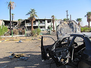 À Beni Oualid, j'avais été invectivé par un groupe d'habitants qui commençaient à se rassembler autour de mon véhicule, et il avait été plus prudent de quitter l'endroit. Je porte en effet sur mon visage d'occidental tout ce que ces gens haïssent désormais et, ayant vu ce que nos gouvernements leur ont fait, je ne saurais les blâmer de s'être montrés agressifs et menaçants envers moi. Ils ont certainement trouvé indécent cet Européen, venu voler ainsi les images de leur malheur.