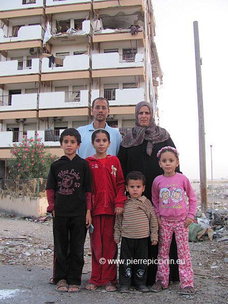 Un petit couple a insisté pour que je le prenne en photographie avec ses quatre enfants. Dignement, ils m'ont demandé de les montrer, sans voyeurisme, devant les ruines de l'appartement qu'ils habitaient à Syrte, pour que « les gens, en Europe, puissent bien se rendre compte de ce qu'ils ont laissé faire ici ».