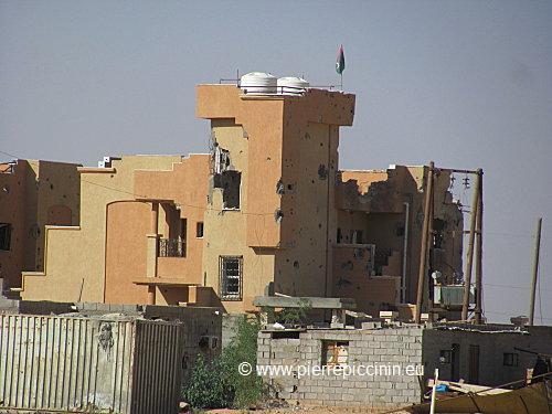 Avant d'arriver à Syrte, j'ai traversé Zliten et Misrata, berceaux des deux seules tribus de l'ouest qui, avec les Berbères du Djebel Nafousa (au sud de Tripoli), se sont soulevées contre le gouvernement libyen et ont rejoint la rébellion, permettant ainsi l'encerclement de la capitale. Les deux villes ont subit d'importants tirs d'artillerie lourde de la part des forces armées libyennes loyales à Mouammar Kadhafi. Á Misrata, en particulier, de nombreux immeubles ont été touchés et en partie détruits lors des combats qui se sont déroulés de mars à avril.