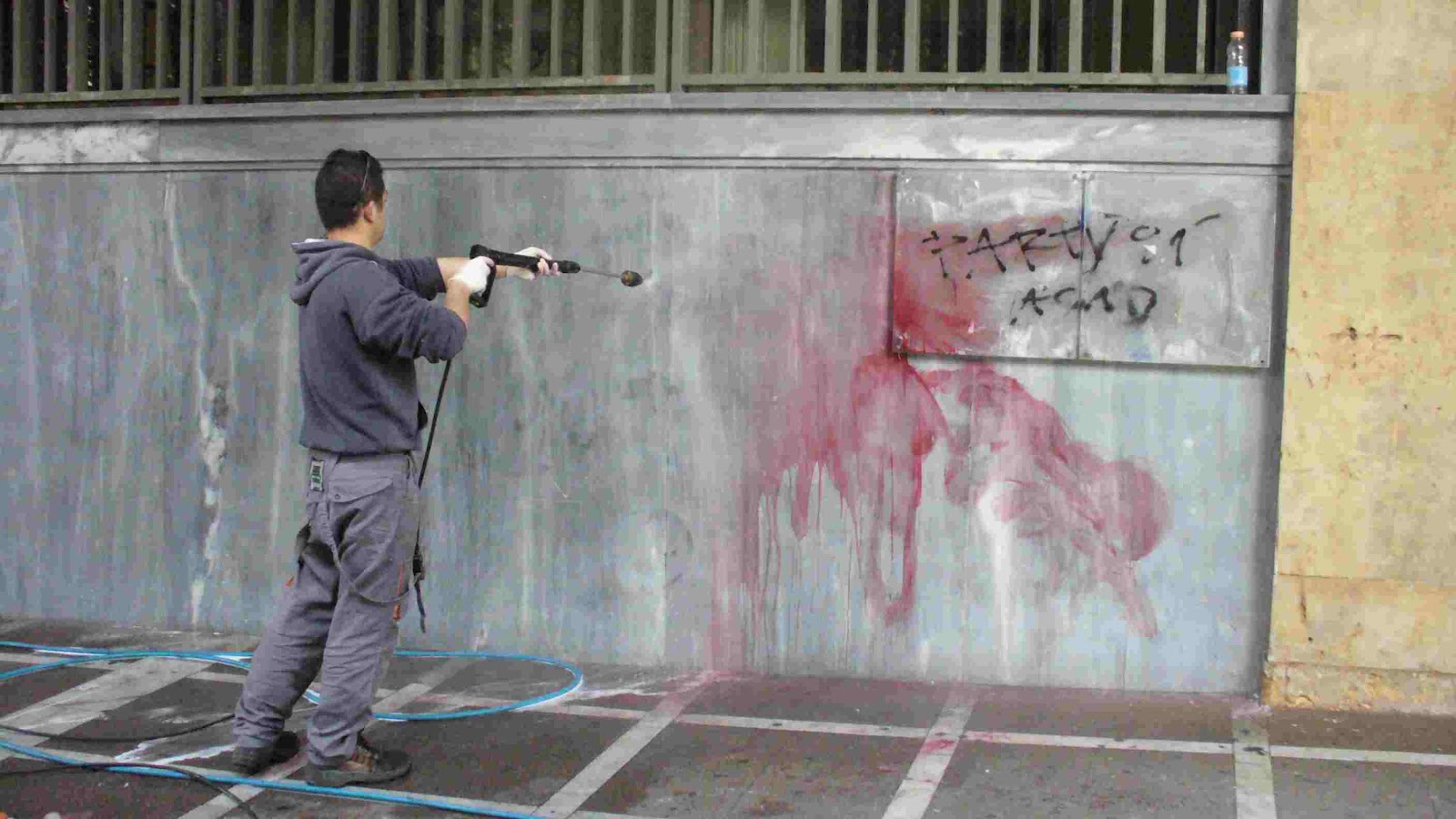 « Nous étions sur la place parmi les premiers et assez proche du cordon des policiers. Très tôt, mais vraiment très tôt, pendant que les gens arrivaient encore par milliers, précisément au moment où Mikis Theodorakis et Manolis Glezos étaient là. Il y a eu un jet d'oranges et d'une bouteille sur les policiers, et rien de plus grave, et ceci a été alors le prétexte de l'attaque que nous avons reçu. Une attaque sans commune mesure avec le passé. Je suis un habitué des manifestations, la police nous empêchait dans chaque tentative à reprendre la place, nous avons été poursuivis et tabassés par les policiers des brigades [CRS] durant deux heures, nous, puis les autres membres des partis et organisations de gauche, y compris ceux du P.C. lesquels finalement n'ont pas eu le temps d'atteindre la place de la Constitution et ainsi rejoindre les autres manifestants. Nous avons eu peur que Mikis Theodorakis et Manolis Glezos succombent. Au même moment, les cagoulés ont commencé. Il y a eu aussi des manifestants qui attaquèrent alors les policiers, c'est normal dans ces cas précis. Ce que je retiens, ce n'est pas la provocation, issue des casseurs avec la complicité apparente de la police, car elle « s'occupait » davantage de nous que d'eux, mais finalement le timing. Car bien beaucoup plus tôt que par le passé, les donneurs d'ordre ont voulu briser la manifestation à son début, faire peur aux gens, nous dissuader de toute action ».