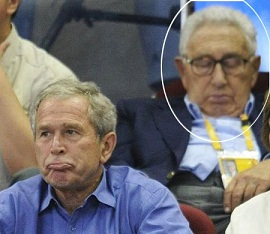 Après une pause pendant quelques minutes pour rassembler ses pensées, M. Kissinger, poursuit: «Nous avons dit aux militaires que nous aurions à prendre plus de sept pays du Moyen-Orient pour leurs ressources et ils ont presque terminé leur travail, nous savons tous ce que je pense de l'armée, mais je dois dire, cette fois, qu'ils ont obéi aux ordres superflus.