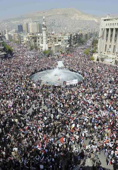 Ironiquement, malgré sa nature autoritaire, le gouvernement du président Bachar Al-Assad jouit d'un appui populaire considérable et les grands rassemblements en faveur du gouvernement le confirment.
