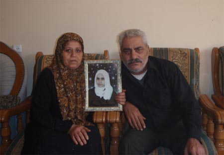 Sur la photo : I'tidal et Ahmed Abu Oda avec la photo de leur défunte fille Nariman