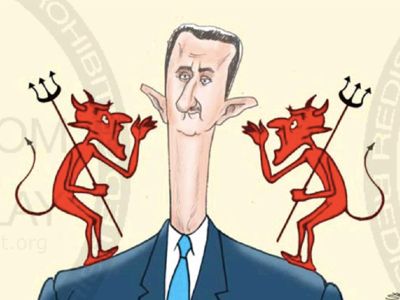 The Saudi Gazette publie une caricature de propagande classique pour diaboliser Bachar el-Assad.