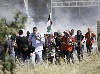 Des manifestants palestiniens essayent d'échapper aux tirs de gaz lacrymogènes - Photo : Dan Dennison