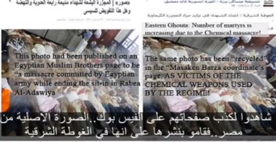 Certaines photographies diffusées par la presse atlantiste ont déjà été utilisées pour accuser l'Armée égyptienne d'avoir massacré un campement des Frères musulmans au Caire.