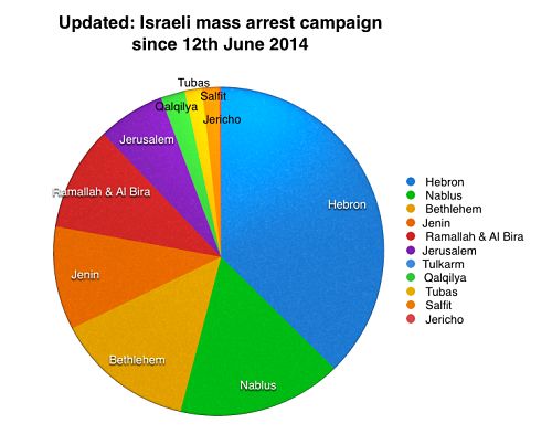 02.07.2014 - 639 Palestiniens, dont 11 députés et des dizaines d'ex-détenus, ont été arrêtés à ce jour depuis qu'Israël a lancé sa campagne d'arrestations arbitraires massives dans toute la Cisjordanie occupée, dans la soirée du jeudi 12 juin 2014.