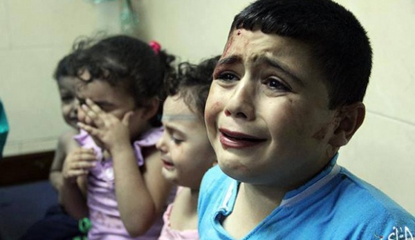 Certains des enfants ttransportés à l'hôpital al-Shifa de Gaza, après un bombardement israélien sur la maison al-Dula - Photo : Facebook ?????? ????????? ???????