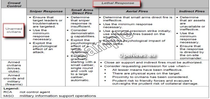 L'aspect le plus inquiétant, c'est que le manuel contient une description d'une « réponse mortelle » contre « des civils non armés», y compris l'utilisation de tireurs d'élite et des attaques directes avec des armes.
