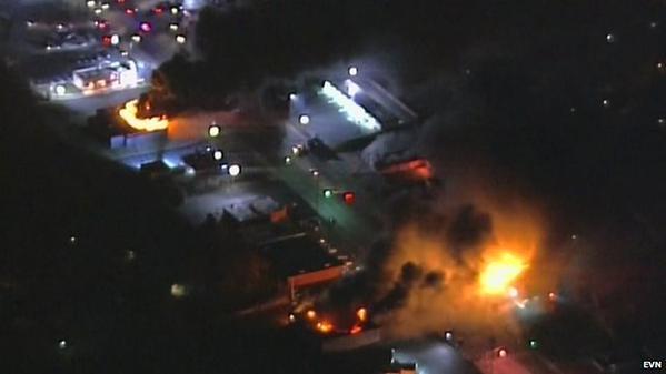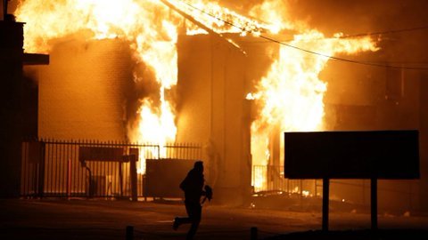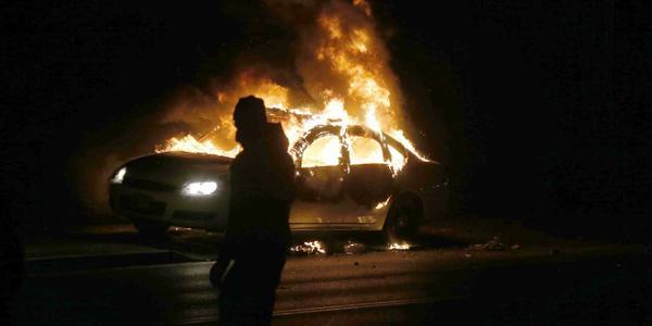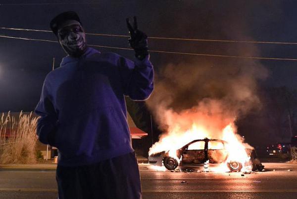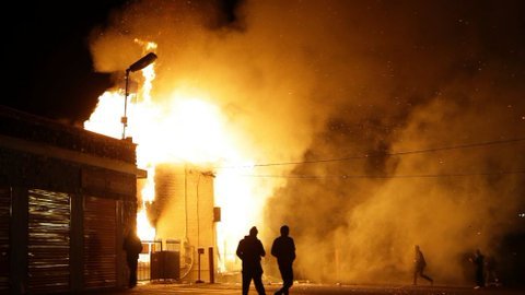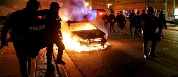 Les manifestants, eux, ont jeté des pierres et des bouteuilles sur les forces de l'ordre. Une voiture de police et un bâtiment ont été incendiés, plusieurs vitrines brisées. Lors du direct de CNN, plusieurs coup de feu, à l'origine indéterminée, ont été entendus.