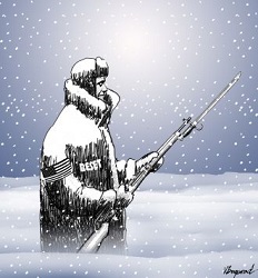 Le danger d'une guerre ouverte entre les deux puissances nucléaires est en réalité beaucoup plus grand que pendant la guerre froide. Nous sommes à présent dans une sorte de Guerre Glaciale, figée, parce que ce que les Russes disent ou font n'a aucun effet. Les néoconservateurs qui fabriquent la politique des États-Unis dans l'ombre ont inventé une histoire totalement fictive sur une « agression » russe que le président des États-Unis, les médias et maintenant le Congrès ont acceptée et approuvée. Les dirigeants russes ont répondu avec honnêteté, vérité et bon sens, et sont restés calmes malgré les invectives lancées contre eux. Rien n'y fait. Les positions sont gelées. Quand la raison échoue, la force suit. Tôt ou tard.