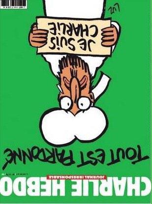 Chose certaine, cette couverture n'a pas fiini de faire parler d'elle... sa provocation osée et habituelle ne semble pas non plus avoir été atteinte par la tragédie et la disparition de 4 de ses dessinateurs cultes.