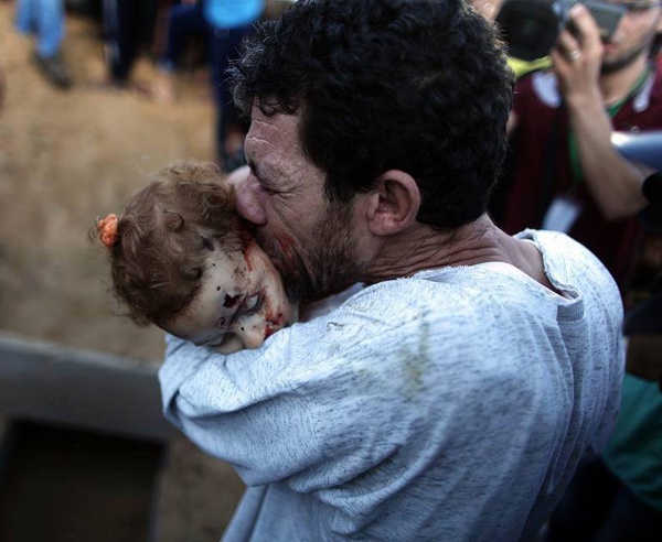 Gaza, juillet 2014 - Un parmi les centaines d'enfants massacrés par la barbarie sioniste... On peut comprendre que la CPI soit astreinte à des procédures rigoureuses dans ses enquêtes, mais il faut espérer que cela ne lui servira pas de prétexte pour échapper à ses responsabilités - Photo : Ezz al-Zanoun