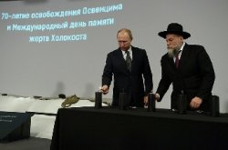 Lors de la Journée internationale du souvenir de l'Holocauste et du 70e anniversaire de la libération du camp de concentration d'Auschwitz par l'armée soviétique, Vladimir Poutine a visité le Musée juif et le Centre de la tolérance à Moscou. Le président a visité l'exposition « Homme et catastrophe » dédiée à l'extermination massive, par les nazis, des détenus dans les camps de concentration. M. Poutine était accompagné du Grand rabbin de Russie, Berel Lazar, et du président de la Fédération des communautés juives, Alexandre Boroda.