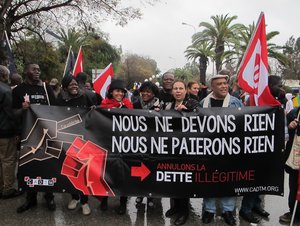 « Annulons, annulons la Dette, elle tue, elle pille, elle assassine », scandent les militants du CADTM, sous une forte pluie au départ de la marche. Les quarante militants du réseau international ont animé cette marche ternie par le mauvais temps mais surtout par la forte présence de délégations ultranationalistes (envoyées par les gouvernements algériens et marocains,...) faisant passer les mots d'ordre du Forum social mondial au second plan.