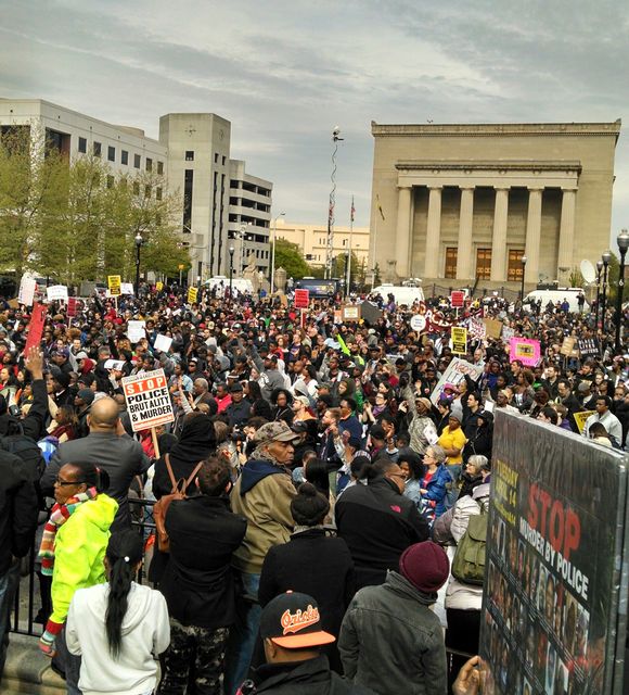 La manifestation, à laquelle avait appelé une coalition de groupes militants locaux et qui fut pacifique dans son ensemble, était la plus importante d'une série de manifestations contre les violences policières ayant eu lieu dans la ville depuis que Gray a succombé à ses blessures la semaine dernière.