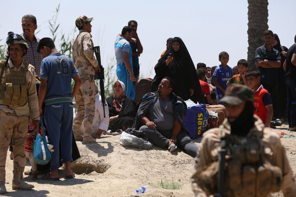 Irakiens s'étant enfuis de Ramadi devant l'avancée des troupes de l'Etat islamique - Photo : EPA/Ahmed Ali