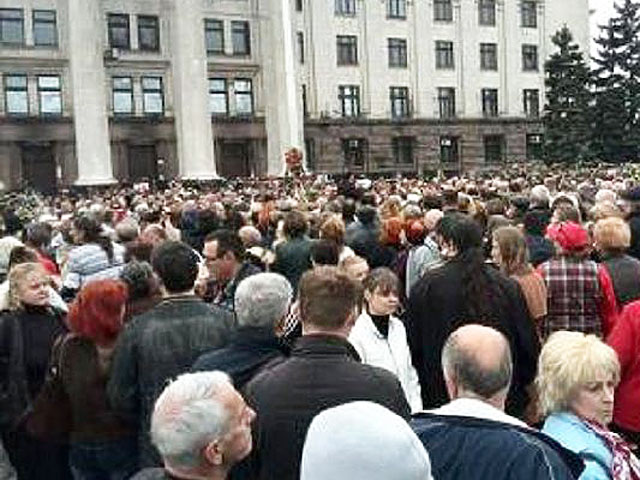 Nous sommes restés sur la place Koulikovo jusqu'à la dernière minute et déjà dans les conversations téléphoniques nous avons appris qu'ils commençaient à tuer les gens dans le centre-ville d'Odessa. Nous avons délibéré entre nous pour savoir ce que nous allions faire et nous avons décidé qu'en aucun cas nous n'abandonnerions et nous ne partirions. Nous avons décidé de rester, il y avait aussi des femmes, d'âges différents, il y avait des personnes âgées, il y avait des enfants parmi nous. Et donc nous avons essayé de les persuader de partir, mais ils ont tous refusé et nous avons compris qu'ils n'allaient pas partir. Pour les protéger spontanément nous avons pensé que si cela devenait grave nous allions nous réfugier dans la Maison des Syndicats. Nous n'avions pas comme projet de nous emparer du bâtiment, nous voulions juste l'utiliser comme un refuge. Nous espérions que la Police allait nous libérer. Trente minutes avant, nous savions que les ultras s'avançaient en colonne de marche du centre-ville et se dirigeaient vers nous. Nous avons donné la consigne de se réfugier dans la Maison des Syndicats, Igor et ses camarades ont ouvert la porte, nous avons commencé à faire entrer en priorité les femmes et les enfants à l'intérieur.