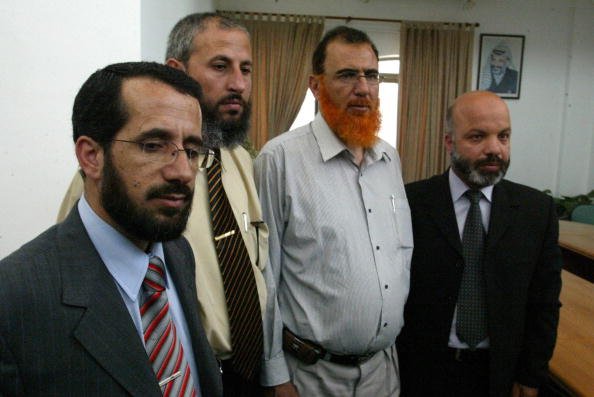 De droite à gauche : les ministres palestiniens Ahmed Attoun, Mohammad Abu Teir et Mohammad Totah, ainsi que le ministre des Affaires de Jérusalem, Khaled Abu Arafeh, réunis dans le bâtiment du Parlement à Ramallah le 30 mai 2006. (photo AFP)