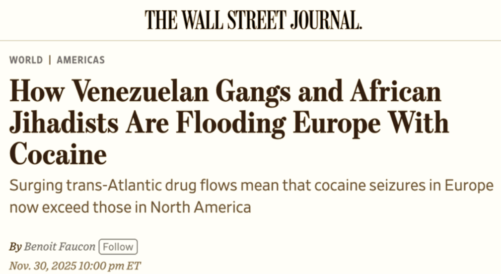Venezuela has become a major launchpad for huge volumes of cocaine shipped to West Africa, where jihadists are helping traffic it to Europe in record quantities. t.co- The Wall Street Journal (@WSJ) December 1, 2025