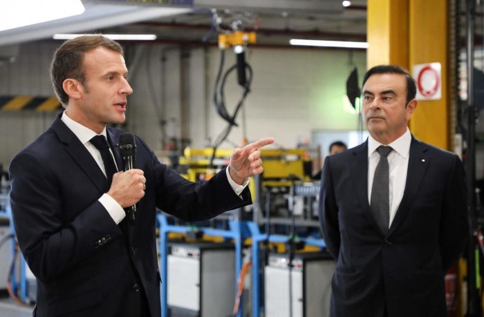 Ghosn et Macron à l'usine Renault de Maubeuge, dans le nord de la France, le 8 novembre 2018