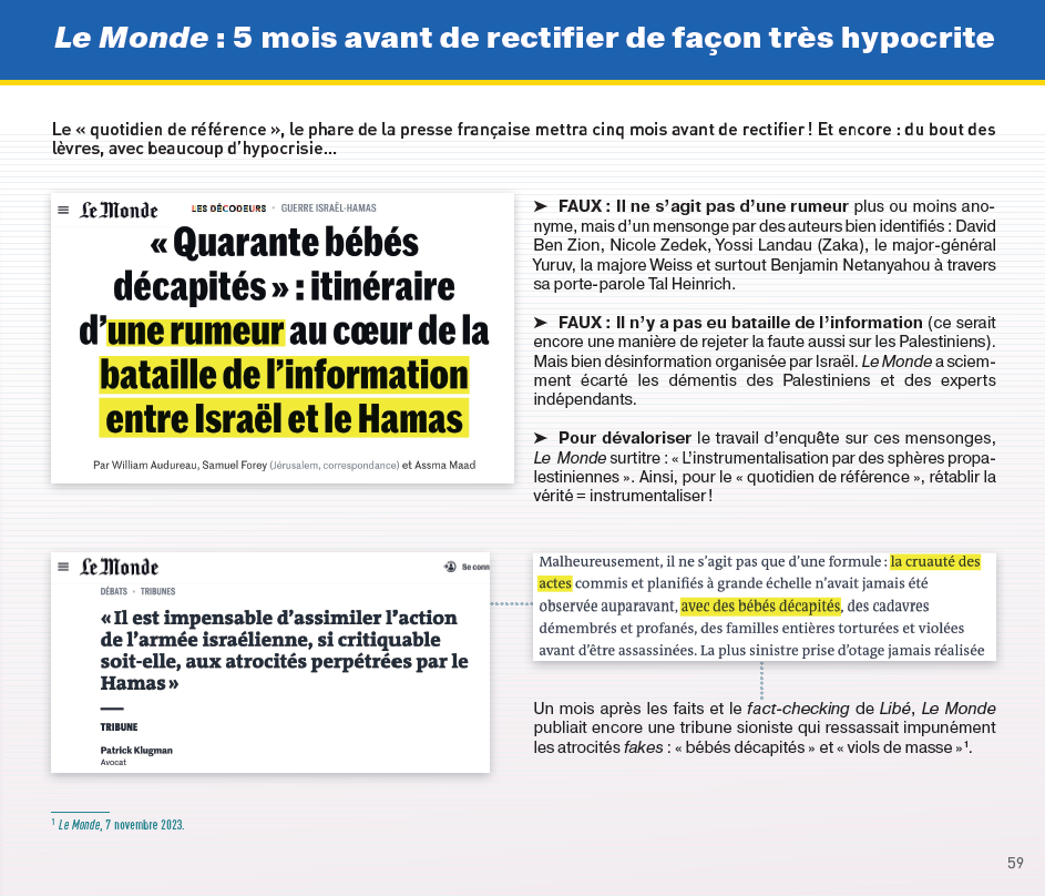 La seule exception est le petit quotidien communiste L'Humanité, dépourvu de la portée et de l'influence des grands titres. Résultat : un paysage médiatique où la propagande pro-israélienne continue de structurer la couverture à tous les niveaux.