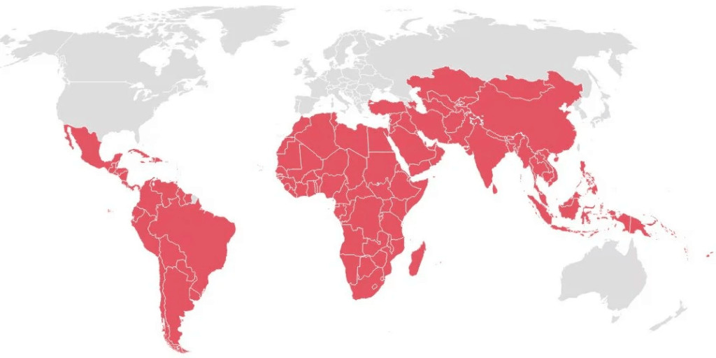 Le «Sud global» tel que défini par l'Organisation pour les femmes dans la science pour le