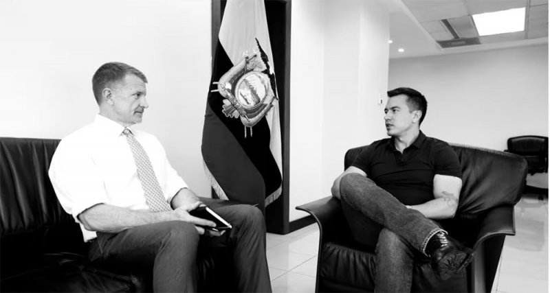 Noboa ignore superbement les décisions des magistrats. Elles représentent, prétend-il, « une invasion dans ses attributions ». Lui entend faire ses preuves, non dans le respect du droit, mais dans l'expression de la virilité absolue. Il révèle avoir scellé « une alliance stratégique » en matière de sécurité avec l'ex-commando des Navy Seals Erik Prince. Pour présenter ce dernier, frère de l'actuelle ministre américaine de l'éducation Betsy DeVos, l'expression la plus adéquate serait « individu connu des services de police ». Prince a été le fondateur de BlackWater. Devenue la compagnie militaire privée (CMP) la plus puissante du monde, BlackWater a bénéficié de centaines de millions de dollars de contrat avec le Pentagone et la CIA pour suppléer l'armée des Etats-Unis en Afghanistan et en Irak. Les suites judiciaires du meurtre de dix-sept civils par ses mercenaires, sur la place Nisour, à Bagdad, en septembre 2007, ont amené Prince, en 2010, à céder ses parts dans la compagnie, devenue « Academi ».